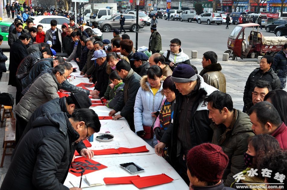 二是突出節(jié)慶內(nèi)涵,舉辦群眾喜聞樂見的主題文化活動(dòng),通過獻(xiàn)演一臺(tái)節(jié)目、送一幅春聯(lián)等方式,為廣大群眾送上節(jié)日的祝福關(guān)愛。1月31日,在秦州劇院舉辦“文化之春”慰問環(huán)衛(wèi)工人大型公益演出,精彩紛呈的節(jié)目,受到市區(qū)領(lǐng)導(dǎo)及廣大民眾的積極肯定。2月1日起,先后組織40余名書畫家在陜省會(huì)館、玉泉鎮(zhèn)煙鋪村、秦州農(nóng)村合作銀行等處舉行“送春聯(lián),送祝福,進(jìn)萬家”活動(dòng),書畫家們現(xiàn)場(chǎng)揮毫潑墨,將真誠(chéng)的新年祝福賦之筆端。2月11日(農(nóng)歷正月初四)至2月14(農(nóng)歷正月初七)在龍城廣場(chǎng)舉行了4場(chǎng)“金猴獻(xiàn)瑞”文藝匯演,精彩的秦腔、鞭桿舞、歌舞、器樂表演吸引了眾多市民前來觀看。