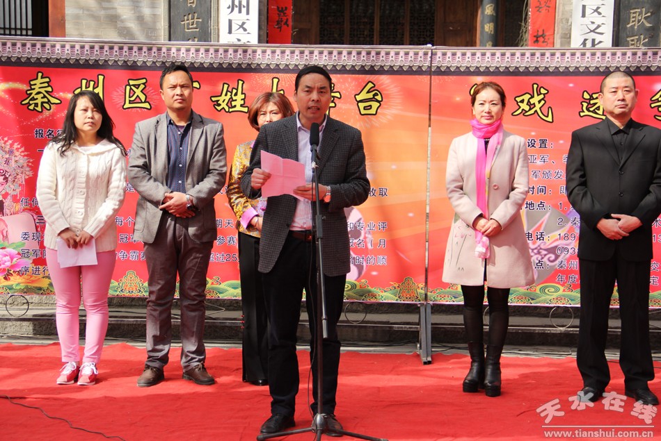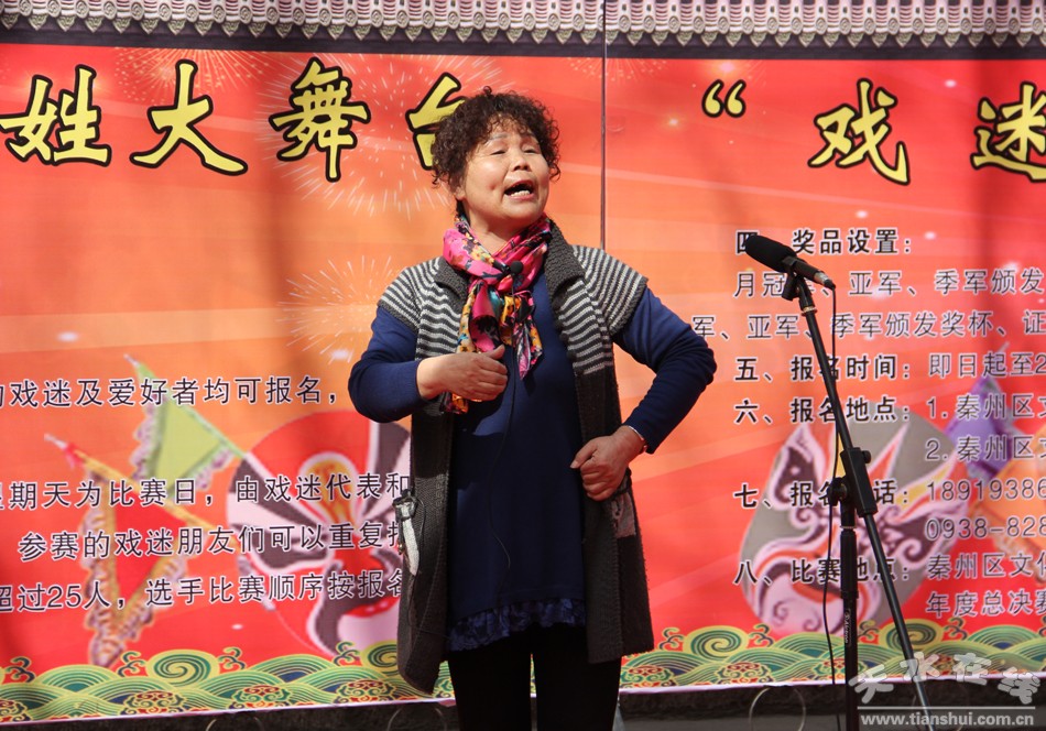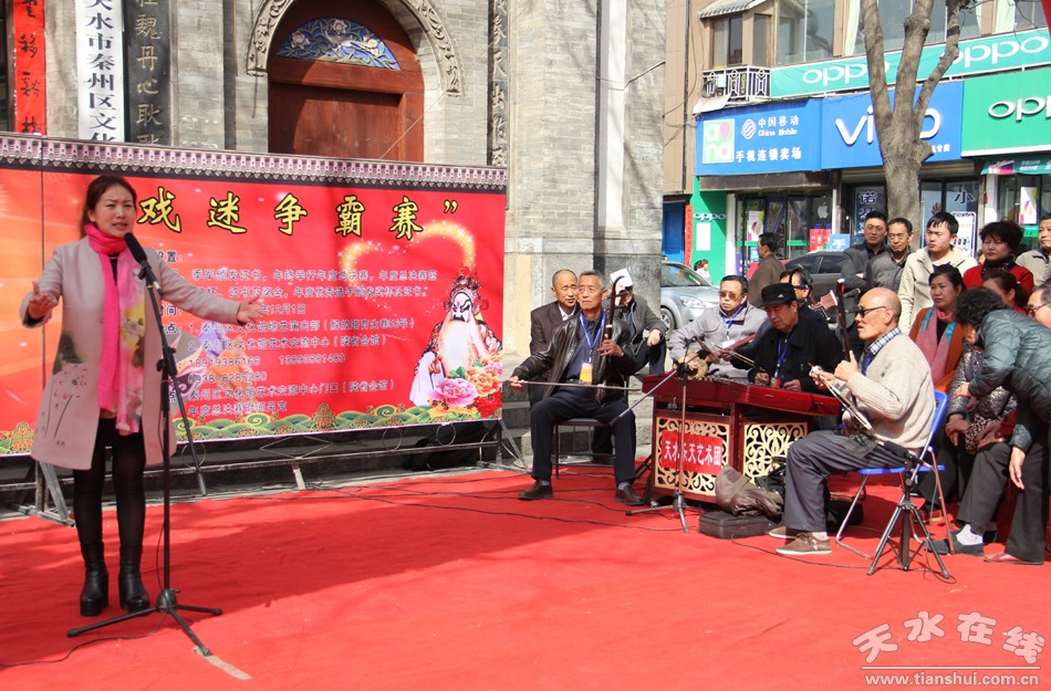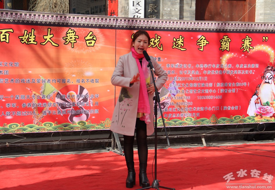 3月13日下午,由天水市秦州區(qū)文化館、天水戲劇家協(xié)會(huì)主辦,天水樂天藝術(shù)團(tuán)協(xié)辦的秦州區(qū)百姓大舞臺(tái)戲迷爭霸賽拉開了帷幕。大賽啟動(dòng)儀式還邀請了中國四小名旦、天水戲劇家協(xié)會(huì)主席、天水西秦腔研究院副院長袁丫丫女士,天水戲劇家協(xié)會(huì)秘書長、天水西秦腔研究院國家二級(jí)演員劉維新先生,天水西秦腔研究院著名老旦演員秋玲娟女士,天水西秦腔研究院著名演員張?jiān)迄i先生作為嘉賓為廣大戲迷朋友奉獻(xiàn)了精彩的演出。