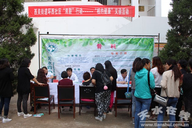 此次義診活動(dòng)由天水407醫(yī)院的專家組成醫(yī)療組,攜帶檢查設(shè)備,為社區(qū)居民進(jìn)行了血壓、血糖和心率檢查,并現(xiàn)場解答咨詢、指導(dǎo)用藥、發(fā)放健康宣傳資料。整個(gè)義診現(xiàn)場氣氛活躍,社區(qū)居民有序地排隊(duì)等候醫(yī)生檢查,翻看著醫(yī)生們發(fā)放的《高血壓的防治》、《如何預(yù)防糖尿病》、《感冒的用藥常識(shí)》等宣傳資料,并不時(shí)地向醫(yī)生進(jìn)行咨詢。