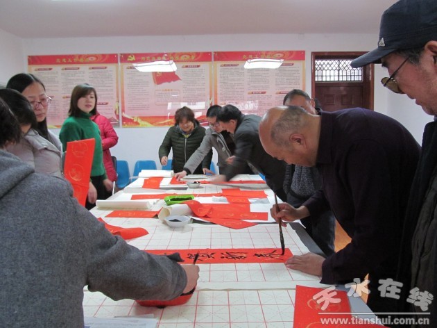 同時(shí),光明巷社區(qū)組織開展了“歲末辭舊歲、春首賀新春”聯(lián)誼茶話會(huì),轄區(qū)退休老干部、道德模范以及在職黨員、孤寡老人、流動(dòng)人口歡聚光明、回味過去、暢想未來,氣氛融洽、歡語連綿,雖是一杯清茶,但架起了一座切切實(shí)實(shí)的社群情誼聯(lián)心橋。共和巷社區(qū)聯(lián)合天水日?qǐng)?bào)社組織轄區(qū)居民開展了“迎新春 送春聯(lián)”活動(dòng),以免費(fèi)寫春聯(lián)、送春聯(lián)的形式,為廣大群眾送上新春的美好祝福。