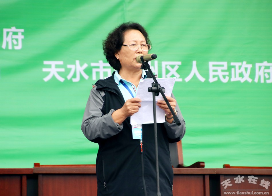 (中國·天水秦州第三屆“李廣杯”國際傳統(tǒng)射箭錦標(biāo)賽總裁判長李淑蘭宣布比賽成績)