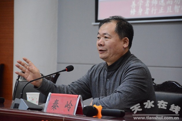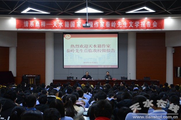11月30日上午,秦嶺先生又到天水市三中報(bào)告廳作了題為《高考作文寫作及當(dāng)下青少年文學(xué)創(chuàng)作》的報(bào)告會(huì),會(huì)議由區(qū)人大常委會(huì)副主任伏承祥主持。區(qū)文聯(lián)、區(qū)教體局、部分區(qū)作協(xié)會(huì)員及市三中高三級(jí)教師和學(xué)生代表共計(jì)700余人參加報(bào)告會(huì)。