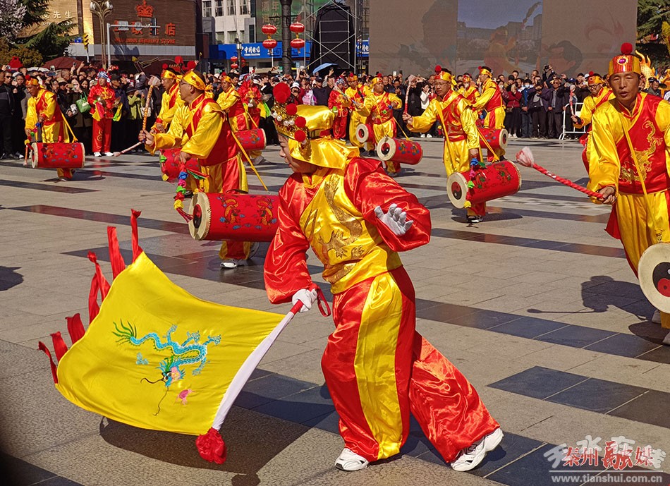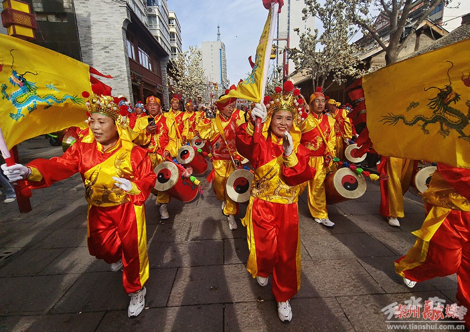 蘭州太平鼓是國家級非遺項目,歷史悠久。太平鼓陣容強大、聲音洪亮、氣勢恢宏,經(jīng)常作為社火的壓軸節(jié)目出現(xiàn)。本次太平鼓在天水龍城廣場、自由路、天水古城、伏羲廟等地進行了集中表演和展示,受到廣大市民和各地游客的追捧和喜愛。