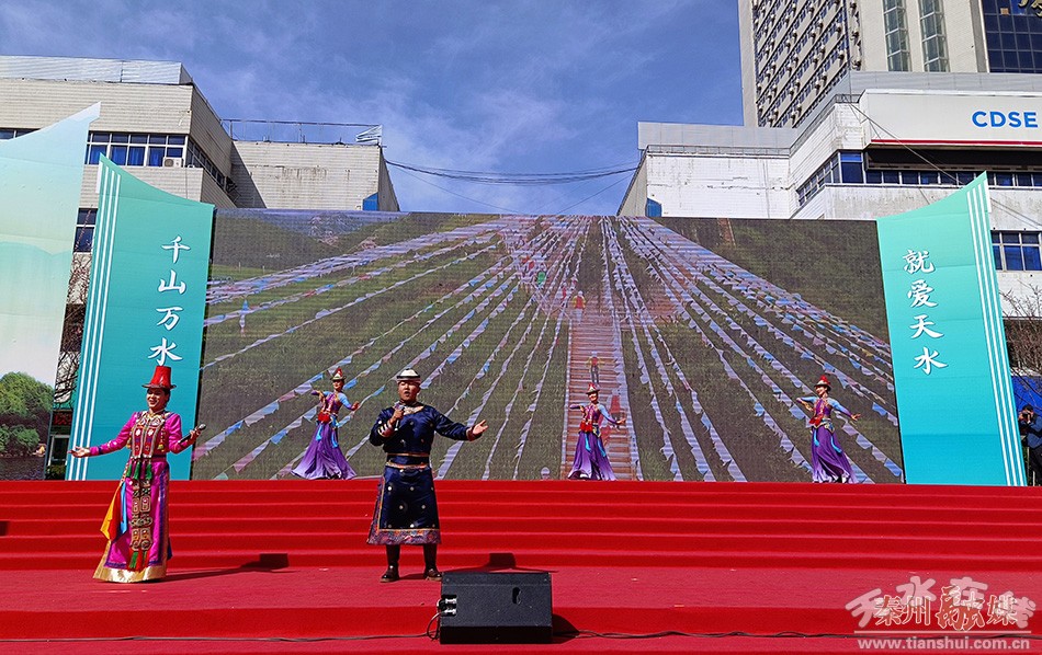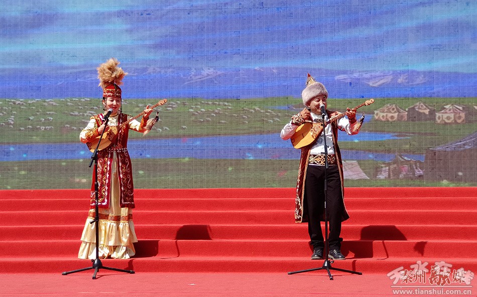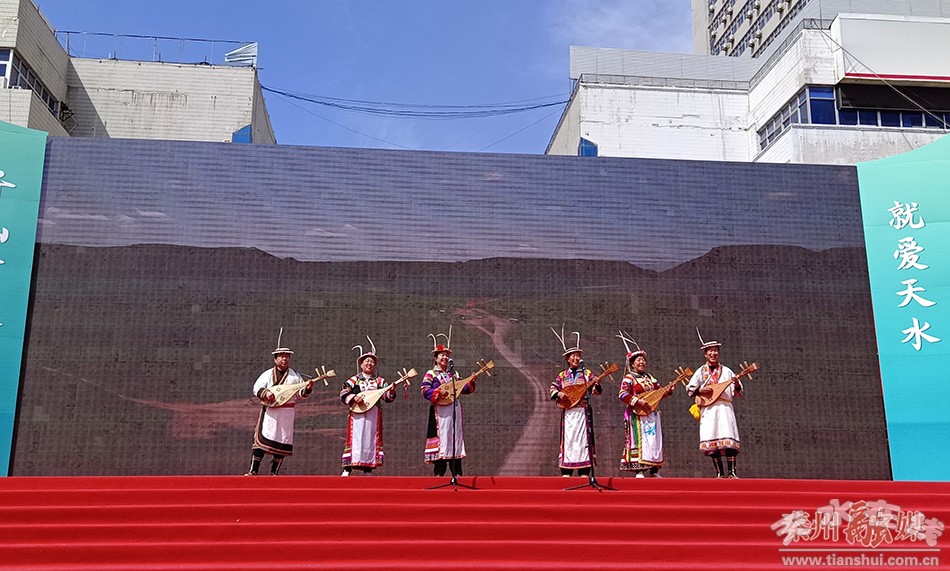 “非常開(kāi)心,第一次來(lái)到天水,我們是來(lái)自隴南文縣,展演的節(jié)目是琵琶彈唱,省級(jí)非遺。我們穿的這個(gè)服裝是白馬藏族服裝,祝愿我們天水成功!彪]南市文縣白馬藏族土琵琶表演者童靖國(guó)說(shuō)。