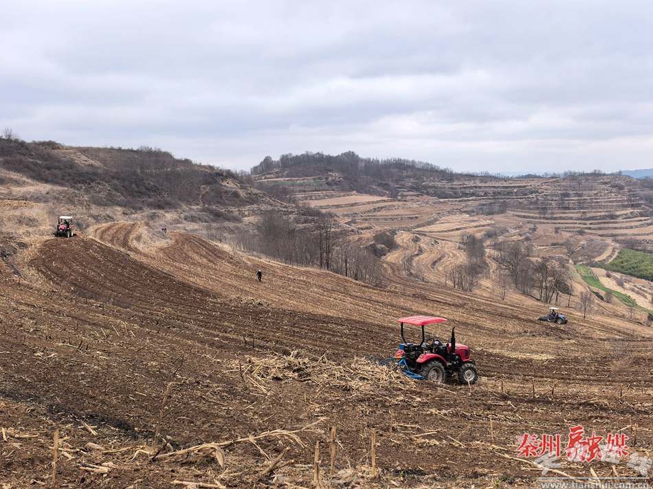 “對去年種過的玉米地進行玉米秸稈和地膜的處理,為今年種玉米打基礎(chǔ),現(xiàn)在共有四臺拖拉機,一天能耕50畝到60畝,估計再有20天左右耕完。”秦州區(qū)大門鎮(zhèn)新引擎合作社負(fù)責(zé)人李斌說。