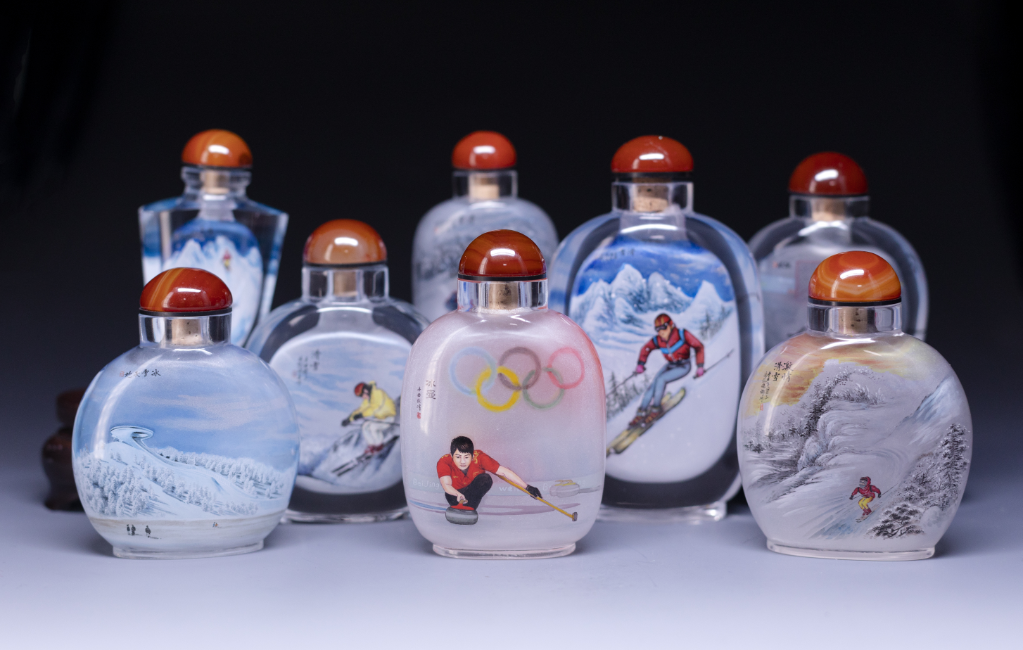 衡水市桃城區(qū)內(nèi)畫藝人創(chuàng)作的“激情冬奧”系列內(nèi)畫作品。(陳康攝)