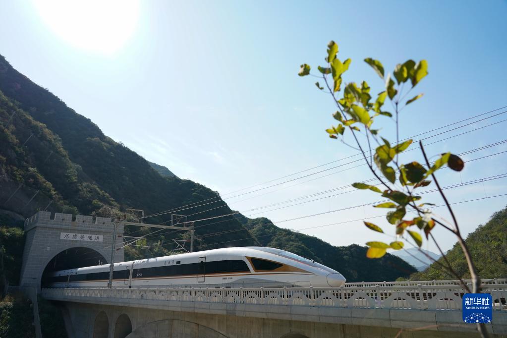 2020年10月6日,一列復興號高鐵列車穿過京張高鐵居庸關隧道。新華社記者 鞠煥宗 攝