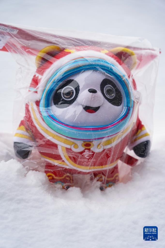 2月13日在頒發(fā)紀(jì)念品儀式上拍攝的榮耀版“冰墩墩”。新華社記者熊琦攝