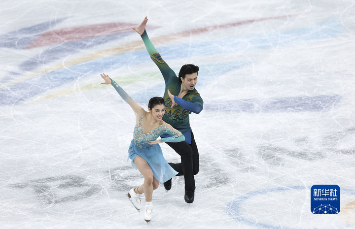 2月14日,中國選手王詩玥(左)和柳鑫宇在北京2022年冬奧會花樣滑冰冰上舞蹈自由舞比賽中。新華社記者曹燦攝