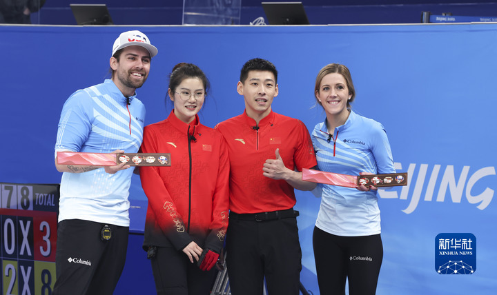“這些徽章太漂亮了,且非常獨特,它們將在我的書桌上擺放很久很久!5日下午,冰壺項目混雙循環(huán)賽賽后,美國隊隊員克里斯托弗·普利斯收到中國隊隊員范蘇圓、凌智贈送的“冰墩墩”奧運紀(jì)念徽章。雙方合影留念,喜悅之情溢于言表。