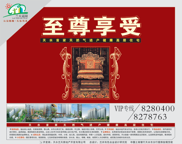 近日,記者從天水中油管道燃?xì)夤精@悉,由天水蘭天房地產(chǎn)開發(fā)的蘭天嘉園,首家在樓房建造中鋪設(shè)天然氣管道到戶。這將意味著,只要蘭天嘉園的業(yè)主一入住,即可享受低價(jià)、環(huán)保,方便的天然氣。記者隨后采訪了蘭天房地產(chǎn)公司副總經(jīng)理葉建輪。他說,蘭天嘉園是蘭天房地產(chǎn)公司繼成功開發(fā)新華苑后,又投入巨資開發(fā)的高檔樓盤。蘭天嘉園以其得天獨(dú)厚的地理位置,先進(jìn)的設(shè)計(jì)理念,綠色環(huán)保的景觀設(shè)計(jì),大受購房者的青睞。為了提高整個(gè)社區(qū)的檔次,更好地為業(yè)主服務(wù),我們又與天水中油管道燃?xì)庥邢薰竞献鳎佋O(shè)天然氣管道入戶,并與中國網(wǎng)通合作,光纖接入整個(gè)局域網(wǎng),這將極大地提升蘭天嘉園業(yè)主的生活品質(zhì),讓他們感覺居住蘭天嘉園的尊貴。