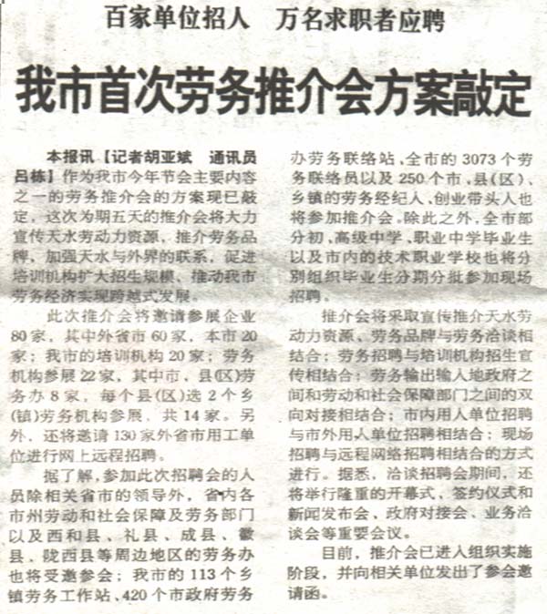 我市首次勞務(wù)推介會(huì)方案敲定