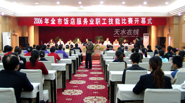 9月21日,天水市飯店服務(wù)業(yè)職工技能比賽在市迎賓館舉行,來(lái)自全市飯店行業(yè)的職工100多人參加了理論和操作的分項(xiàng)比賽。這項(xiàng)比賽活動(dòng)由天水市總工會(huì)、市勞動(dòng)和社會(huì)保障局、商務(wù)局、旅游局共同承辦。