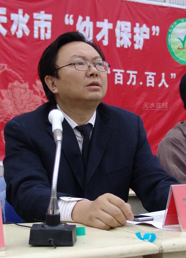 天水計算機專修學院院長王晉在啟動儀式上介紹“幼才保護”工程。
