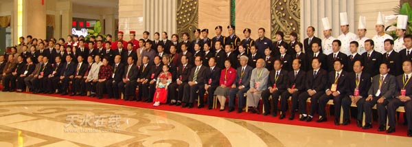 圖為出席會議的領(lǐng)導(dǎo)與天水賓館工作人員合影留念