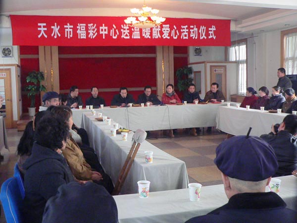 天水在線訊 1月26日下午三時(shí),由天水市民政局、天水市福彩中心組織的福利彩票為困難群眾“送溫暖、獻(xiàn)愛心”活動(dòng)在秦州區(qū)招待所三樓舉行。參加本次活動(dòng)的有天水市民政局局長(zhǎng)郭明興、副局長(zhǎng)韓莉、秦州區(qū)委常委、副區(qū)長(zhǎng)王小林。