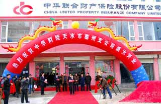 2006年10月27日,經(jīng)中國保監(jiān)局批準(zhǔn),中華聯(lián)合財(cái)產(chǎn)保險(xiǎn)股份有限公司天水市秦州區(qū)支公司正式籌建,經(jīng)過五個(gè)多月的籌建準(zhǔn)備工作,2007年3月19日公司正式開業(yè)。公司經(jīng)營的范圍主要有:財(cái)產(chǎn)保險(xiǎn)及再保險(xiǎn);人身保險(xiǎn)及其再保險(xiǎn);保險(xiǎn)資金運(yùn)用及中國保監(jiān)會(huì)批準(zhǔn)及其他保險(xiǎn)資金運(yùn)用;涉外保險(xiǎn)業(yè)務(wù)。秦州支公司的開業(yè),不僅為天水的保險(xiǎn)市場注入了新鮮血液,同時(shí)也將為中華保險(xiǎn)參與推動(dòng)天水保險(xiǎn)市場的健康發(fā)展,全面提升保險(xiǎn)服務(wù)質(zhì)量提供了良好的機(jī)遇,為中華保險(xiǎn)在天水的發(fā)展起到了積極推動(dòng)作用。