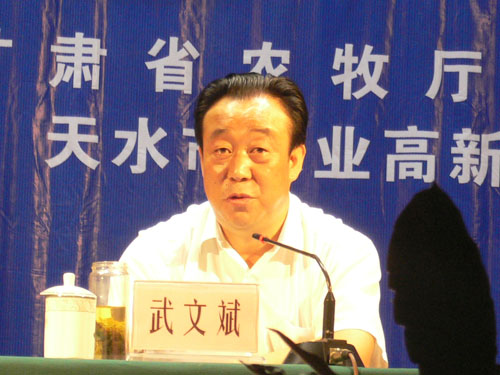 武文斌在講話中指出,甘肅地處青藏、蒙新、黃土三大高原交匯處,橫跨溫帶、暖溫帶、亞熱帶三個(gè)氣候帶,水資源分屬長江、黃河、內(nèi)陸河三大流域,生態(tài)和生物多樣性明顯。從傳統(tǒng)農(nóng)業(yè)角度講,甘肅干旱少雨,生態(tài)脆弱,發(fā)展農(nóng)業(yè)的制約因素比較多,而從商品農(nóng)業(yè)的角度講,甘肅地理過渡性強(qiáng),生態(tài)和氣候多樣,光熱和生物資源豐富,在發(fā)展特色農(nóng)業(yè)方面具有明顯的比較優(yōu)勢。這次會(huì)議以“發(fā)揮園區(qū)示范引領(lǐng)作用,推動(dòng)現(xiàn)代農(nóng)業(yè)快速發(fā)展”為主題,多角度交流園區(qū)建設(shè)經(jīng)驗(yàn),全方位謀劃園區(qū)發(fā)展大計(jì),其積極成果必將對甘肅農(nóng)業(yè)科技示范園區(qū)建設(shè)產(chǎn)生重大影響,對甘肅農(nóng)業(yè)科技進(jìn)步和現(xiàn)代農(nóng)業(yè)建設(shè)起到有力的推動(dòng)作用,相信通過會(huì)議經(jīng)驗(yàn)交流、思路的拓寬,一定會(huì)把甘肅的農(nóng)業(yè)科技示范園區(qū)建成科技領(lǐng)先的農(nóng)業(yè)園、效益顯著的產(chǎn)業(yè)園、環(huán)境優(yōu)美的生態(tài)園、文明開放的旅游園,為全省現(xiàn)代農(nóng)業(yè)建設(shè)發(fā)揮示范帶動(dòng)作用。