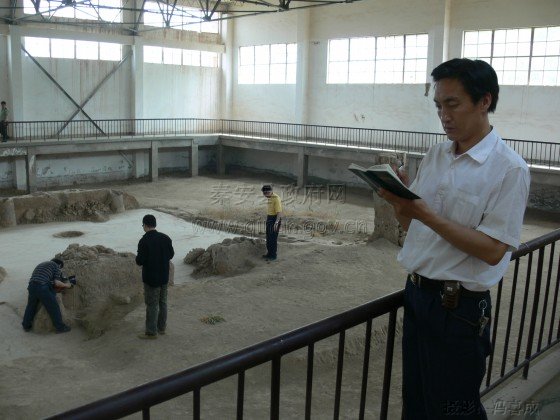 程曉鐘還帶領(lǐng)我們走訪了31年前發(fā)現(xiàn)國(guó)寶級(jí)文物——人頭形器口彩陶瓶的五營(yíng)鄉(xiāng)邵店村村民張德祿。那是1976年4月的一天,二十歲剛出頭的張德祿和大伙在村旁陡坡地修梯田時(shí),突然用鐵锨翻出一個(gè)奇特的“花瓶”——頭是女人頭,惟妙惟肖;身為葫蘆身,通體彩繪。他出于好奇,就將這個(gè)“花瓶”帶回家里,小心翼翼地?cái)[放在柜子上。1978年初,省文物考古工作者來(lái)到邵店村,與縣文化館工作人員一道開(kāi)展文物普查收購(gòu)工作,張德祿便將“花瓶”上繳給了文物普查小組。現(xiàn)年56歲的張德祿提起這段如夢(mèng)如煙的往事時(shí)感嘆不已:“要是當(dāng)時(shí)一锨背敲下去,或者聽(tīng)家人的話扔掉,那就成了永遠(yuǎn)無(wú)法彌補(bǔ)的遺憾!睌z制組在拍攝中還演繹了縣文化館韓館長(zhǎng)當(dāng)年在邵店村收購(gòu)文物時(shí)的情景。