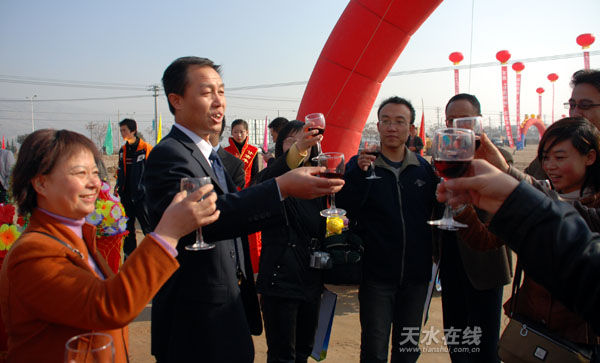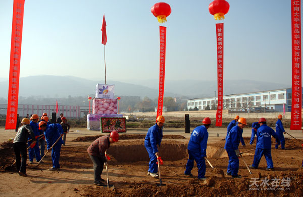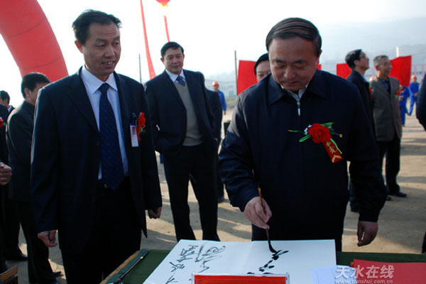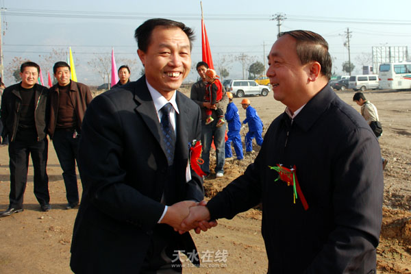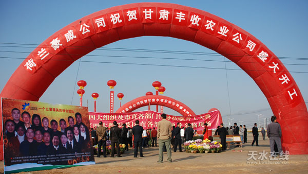 2007年11月18日上午10時許,天水二十里鋪工業(yè)園區(qū),彩旗獵獵,鑼鼓陣陣,來自省市區(qū)各級領(lǐng)導(dǎo)、相關(guān)職能部門負(fù)責(zé)人、社會各界代表匯聚一起,為甘肅豐收農(nóng)業(yè)科技有限公司、隴南市成縣隴新實業(yè)有限公司、天水長城通用電器有限公司、天水佳瑞膠粘帶有限公司、天水長城自控電器有限公司、天水翰澤興商貿(mào)有限公司等6家企業(yè)同時舉行隆重的開工建設(shè)慶典。標(biāo)志著經(jīng)過全市各界的共同努力,我市招商引資工作又取得了驕人的輝煌業(yè)績。