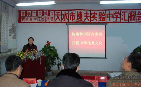 天水市一中將語言課堂作為提高學(xué)生語言文字素養(yǎng)的主陣地,堅持把漢字“正音”作為語文課朗讀的主要內(nèi)容,把“正字”作為作文批改的基本程序。完善語言文字使用的監(jiān)管制度,對各處室的公文、印刷物進行檢查,形成了由課堂、處室到校園的全方位檢查監(jiān)督體系,同時學(xué)校還對50周歲以上的老同志發(fā)出了規(guī)范用語用字的倡議,力爭實現(xiàn)全員參與、人人過關(guān),確保學(xué)校規(guī)范用語用字無死角、無盲點。學(xué)校將語言文字工作與教育教學(xué)緊密結(jié)合積極開展科研活動《天水市一中國文經(jīng)典閱讀與語文素養(yǎng)培養(yǎng)的實踐與研究》已通過省教育科研“十一五”課題立項。
