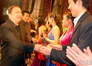 演出結(jié)束后,天水市領(lǐng)導(dǎo)、長城電工領(lǐng)導(dǎo)與演員合影