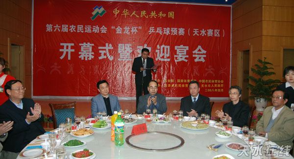 【本報(bào)訊】4月22日,由農(nóng)業(yè)部、國家體育總局、中國農(nóng)民體育協(xié)會(huì)主辦,省農(nóng)民體育協(xié)會(huì)、天水市政府承辦的全國第六屆農(nóng)民運(yùn)動(dòng)會(huì)乒乓球預(yù)賽(天水賽區(qū))隆重開幕。