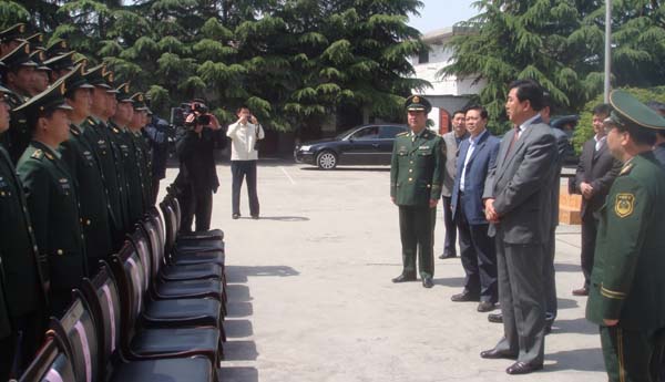 4月23,天水市委書記、市人大常委會主任張景輝,市委副書記、市長李文卿,市委常委、政法委書記韓岱成,市委常委、秘書長張懷仁,副市長楊維俊一行,親切看望了武警天水支隊的全體官兵,并勉勵他們再接再厲,奮發(fā)圖強,為天水的經(jīng)濟(jì)社會發(fā)展和今年奧運會火炬?zhèn)鬟f工作做出新的貢獻(xiàn)。