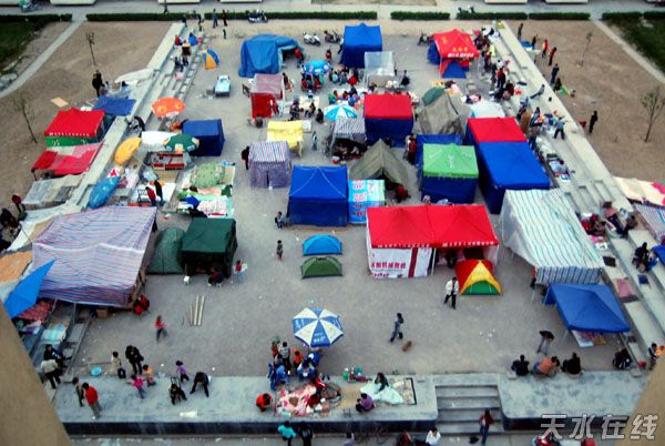 天水市民晚上在小區(qū)花園里搭起帳篷過(guò)夜(配圖:天水在線)