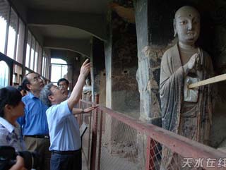 查看麥積山石窟文物受損情況
