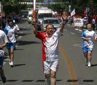 7月7日,北京奧運火炬手張廣智在蘭州傳遞圣火。