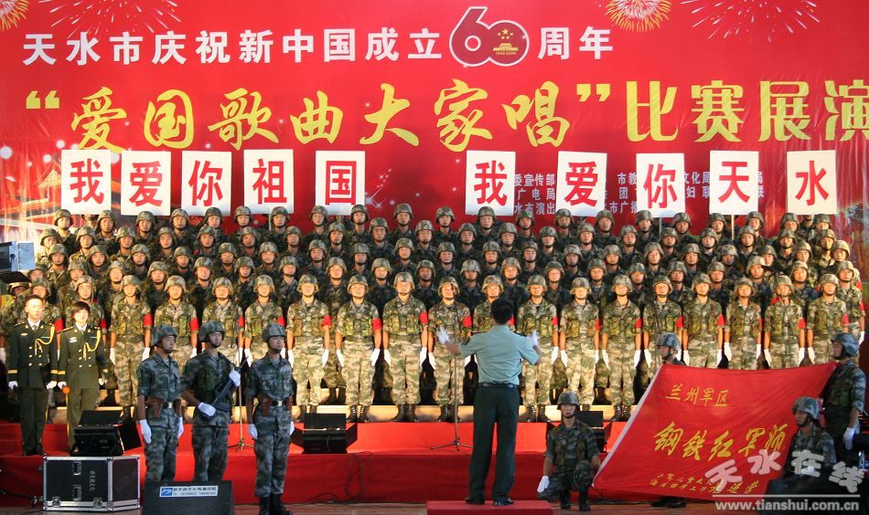 9月24日下午,由天水市委宣傳部、市文明辦、市教育局、市文化局、市民政局、市廣電局、市總工會、團市委、市婦聯、市文聯聯合主辦,天水市演出公司、天水市廣播電視臺承辦的天水市慶祝新中國成立60周年“愛國歌曲大家唱”比賽展演在天水市南山體育場訓練館開賽。