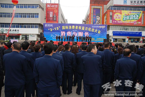 3月15日,由中共天水市委宣傳部、市文明辦、市工商局、市消協(xié)主辦的“3.15”國際消費者權(quán)益日紀(jì)念大會在天水市中心廣場隆重召開。中消協(xié)將今年消費的主題定為“消費與服務(wù)”。