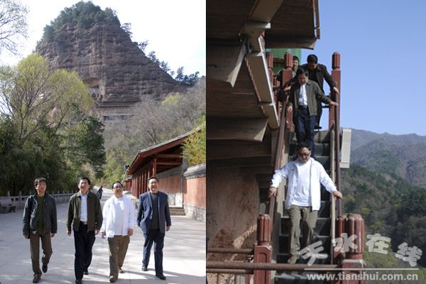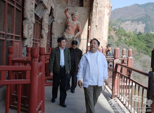 陜西省委宣傳部副部長、陜西省廣電局局長任賢良在麥積山石窟參觀考察