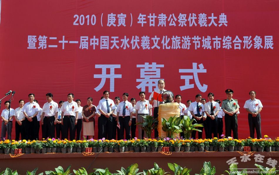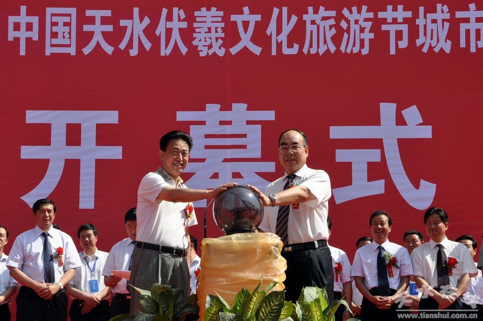 天水市市長李文卿和甘肅省商務(wù)廳副廳長王代喜共同啟動(dòng)2010年中國天水伏羲文化旅游節(jié)城市綜合形象展