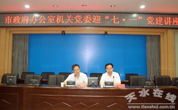 6月30日,天水市政府辦公室機關黨委舉辦迎“七一”黨建理論講座。市委黨校黨史黨建教研室副主任、副教授蒲曉光以《共產黨員要增強黨性》進行理論輔導,蒲教授圍繞深入開展創(chuàng)先爭優(yōu)活動、加強機關效能建設和作風建設,就新形勢下共產黨員如何進一步加強黨性修養(yǎng)作了詳盡的闡述。市政府機關黨委委員、各支部全體黨員參加了會議。