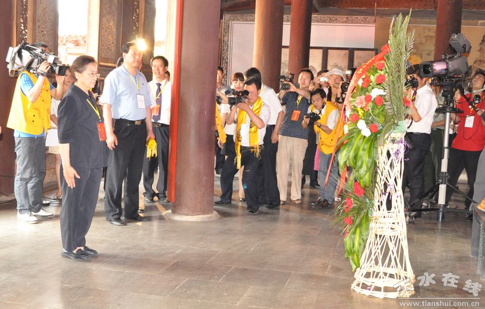 由甘肅省人民政府主辦的2010(庚寅)年公祭中華人文始祖太昊伏羲大典于6月22日在甘肅省天水市隆重舉行。十屆全國人大常委會副委員長、原民革中央主席何魯麗,甘肅省委書記陸浩,及來自海內(nèi)外的各界人士代表參加了祭祀伏羲儀式。