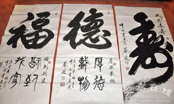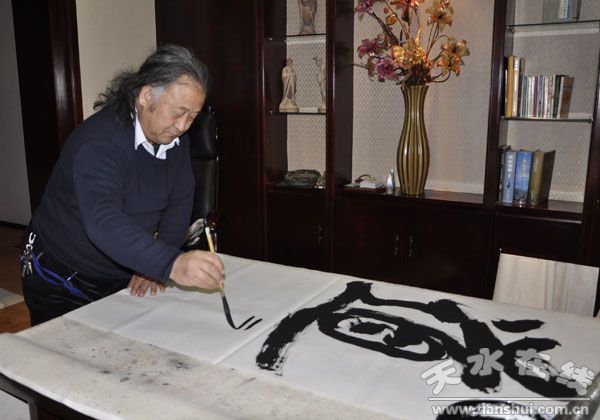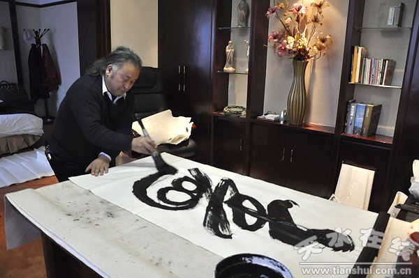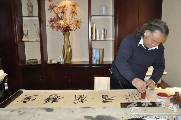 1月11日下午,天水籍中國國際書畫藝術協會理事會副主席蘇波先生在下榻的迎賓館為天水友人揮毫潑墨。