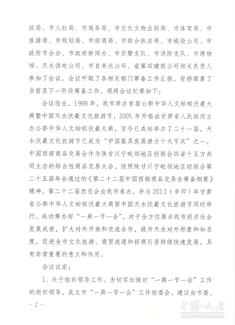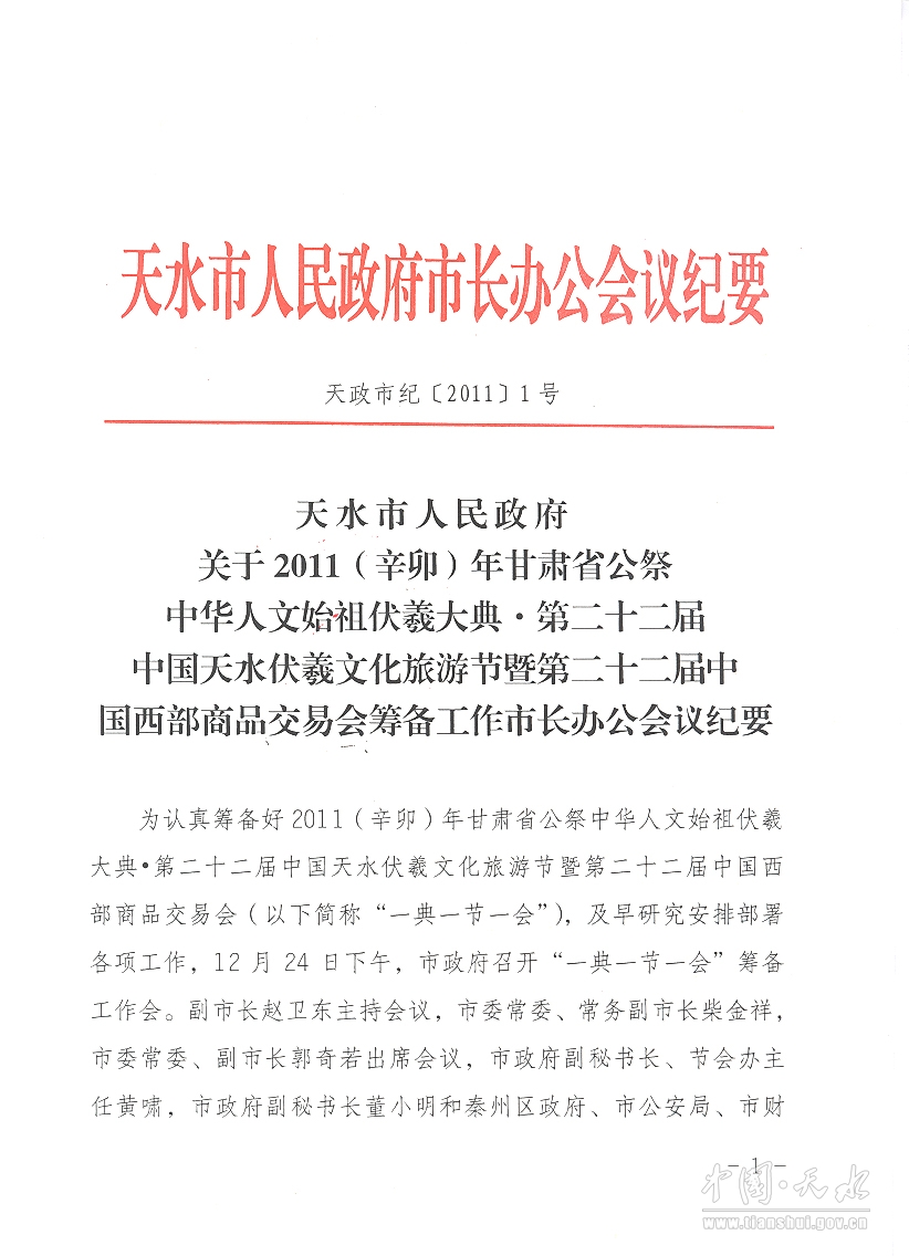2011年“一典一節(jié)一會”籌備工作市長辦公會紀(jì)要