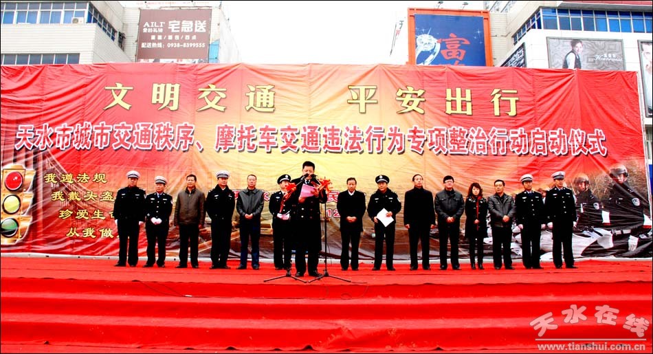 12月13日,天水市以“文明交通,平安出行”為主題的天水市城市交通秩序、摩托車交通違法行為專項整治行動在龍城廣場正式啟動。市委常委、常務(wù)副市長郭奇若參加啟動儀式。