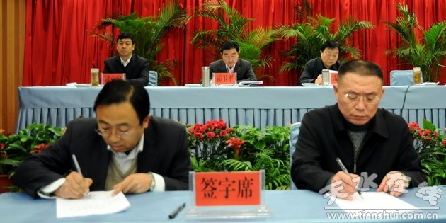 (市長王銳代表市政府與甘谷縣簽訂2012年度目標管理責任書 )