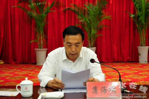 (市政府副秘書(shū)長(zhǎng)孫曉宣讀天水市政府辦公室《關(guān)于切實(shí)做好強(qiáng)降雨天氣防范和應(yīng)對(duì)工作》的通知 )