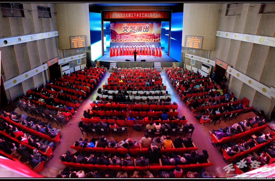 1月13日,天水市某部隊(duì)禮堂里張燈結(jié)彩,幾位戰(zhàn)士正仔細(xì)地檢查會(huì)場。當(dāng)晚,中央民族樂團(tuán)在此進(jìn)行了“三下鄉(xiāng)”的首站演出。