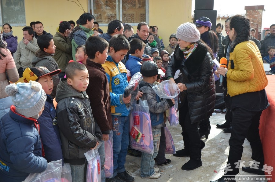 中央民族樂團(tuán)不光為甘肅的父老鄉(xiāng)親帶來了精彩的節(jié)目,還為這里的小朋友準(zhǔn)備了一些過冬的衣物和書包、作業(yè)本、鉛筆等學(xué)習(xí)用具。拿到禮物的孩子們開心極了,他們把書包緊緊地抱在胸前,用向陽花般燦爛的笑容回報(bào)藝術(shù)家們。