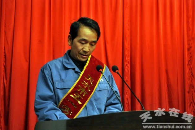 (工人代表、天水星火機床有限公司工程師、省市五一勞動獎章獲得者、市勞動模范張寶生發(fā)言)