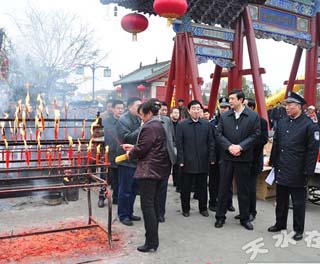 (趙衛(wèi)東、霍衛(wèi)平檢查伏羲廟春節(jié)文化廟會安保工作)