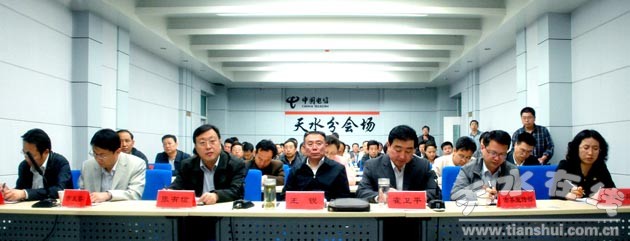 (天水市委副書記、市長王銳,副市長霍衛(wèi)平在天水分會場參加會議)