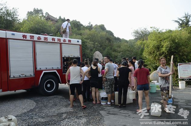 (消防官兵為秦州區(qū)玉泉觀附近居民免費送水)