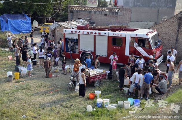 (消防官兵為秦州區(qū)王家半坡居民免費送水)