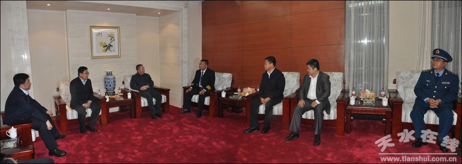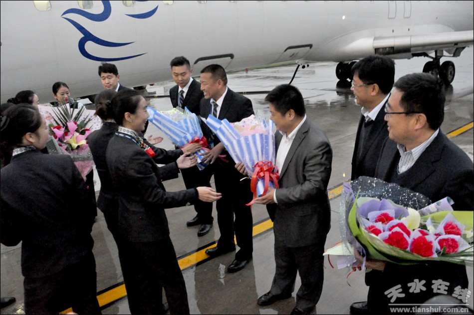 (天水市委書(shū)記王銳等在天水機(jī)場(chǎng)迎接首班客人)